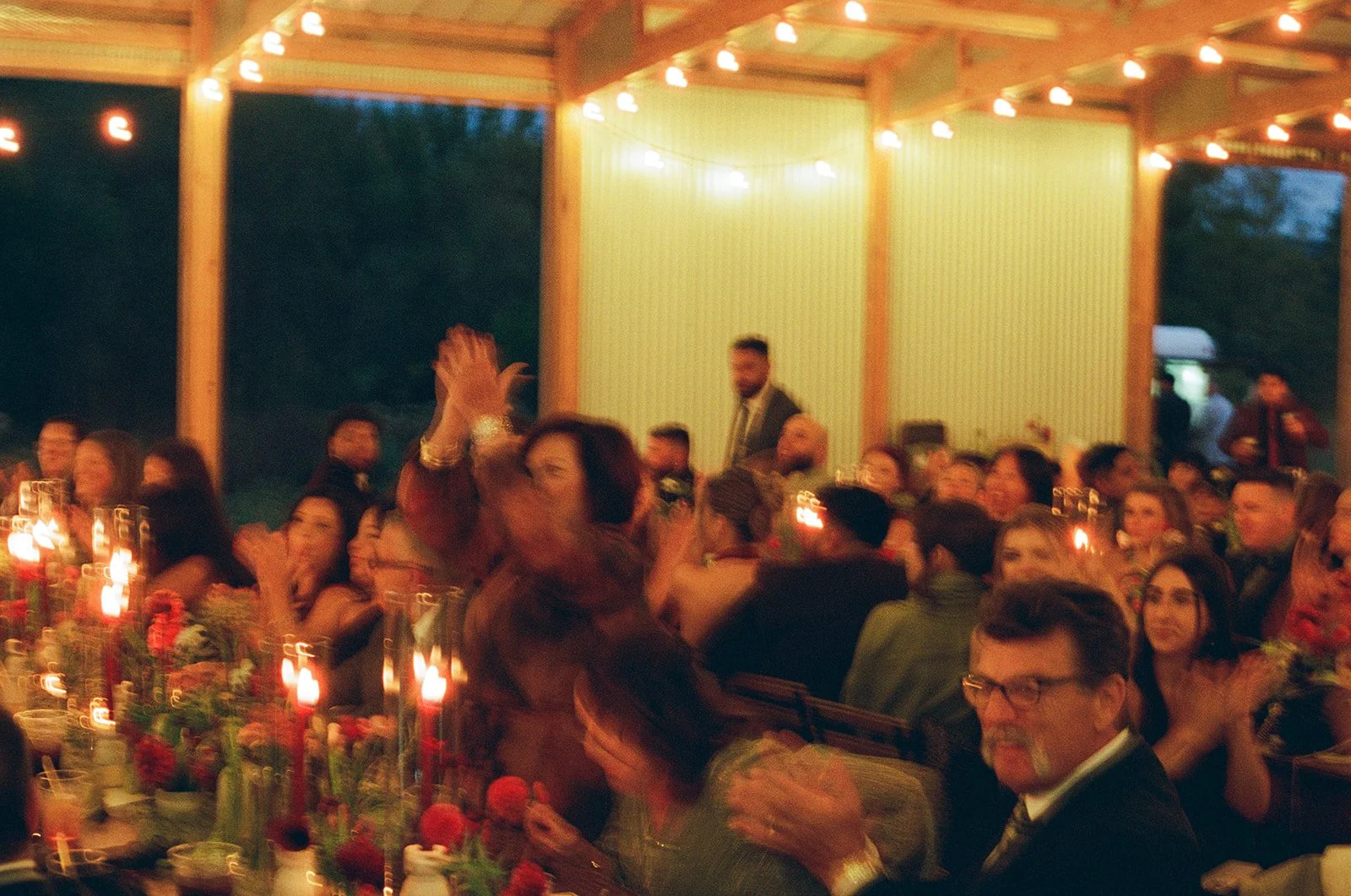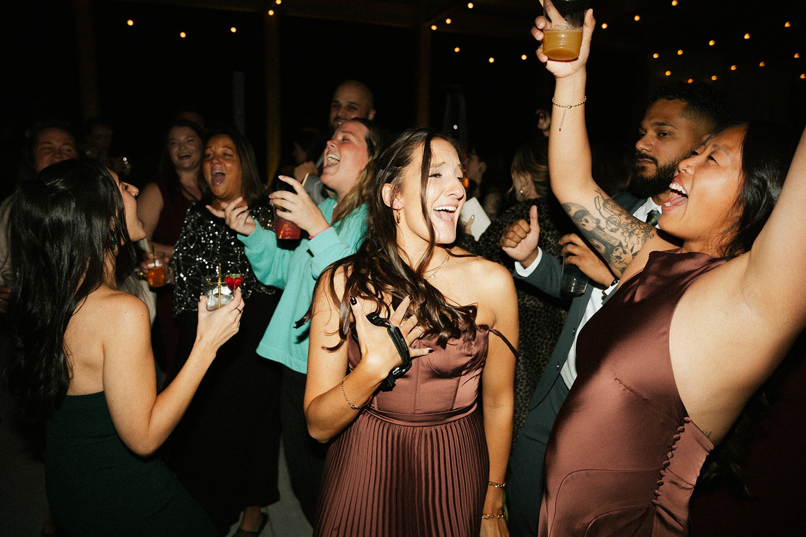 Everyone gathered in the pavilion where the dance floor quickly filled up. The disco floral installation overhead created the perfect atmosphere as the lights dimmed and the music started.